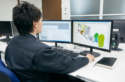 ・当社の最大の強みは、未経験者も設計スペシャリストへと育て上げる教育システム。研修期間の3ヶ月で、現場で役立つ知識を習得できます。配属後は自社の設計室で、経験豊富な先輩エンジニアのフォローを受けながら基本的な技術を習得します。その後、様々な設計業務に携わり、さらなるスキルアップを図ることができます。