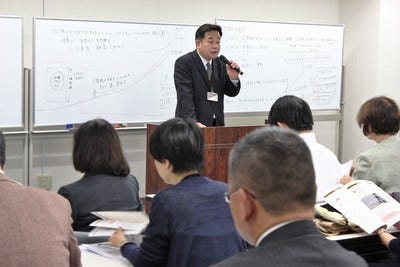 講師向けの研修会を開催するのも、授業の質向上には欠かせない業務です。熱い思いを共有してもらいます。