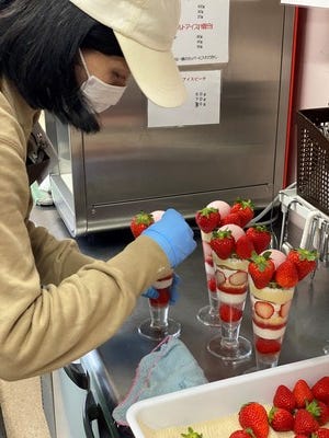 新鮮なフルーツを使用したパフェが目玉。どんな商品が喜ばれるか考えるのもやりがいです。