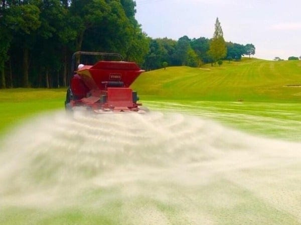 …10日に一回のペースでグリーンには肥料や虫喰い対策の薬剤を散布します。