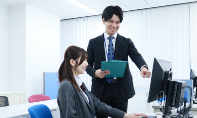 総合職は教師や子どもたちが授業に専念できる環境づくりを行っています。校舎の顔として、訪れる保護者や生徒の対応をする接客の仕事や、入室手続きやお知らせの作成、テキストの仕分けなどの事務の仕事がメインになります。