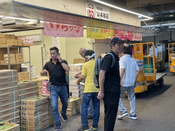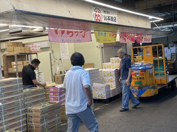まず、前日に競り落とした商品を倉庫から品出し・運搬して市場内の店頭に並べ、商品を販売します。