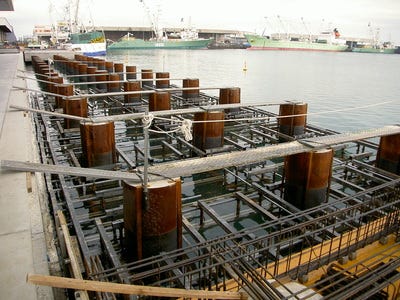海洋構造物の設計は、岸壁、護岸、桟橋、防波堤、防潮堤など海洋構造物の設計及び動的解析、それに伴う各種計算です。