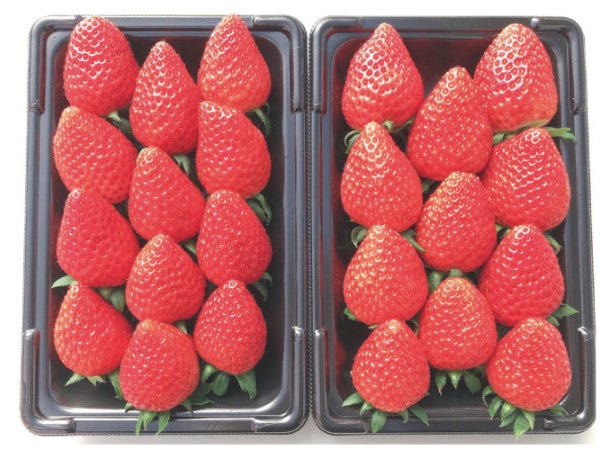 品種ごとにイチゴをパックに詰めていきます。