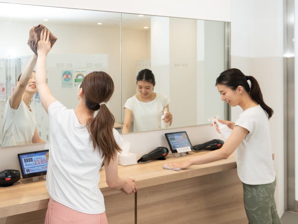 更衣室をキレイに保つことも重要なお仕事です。レッスン以外でもお客様に心地よい空間を提供していきます。