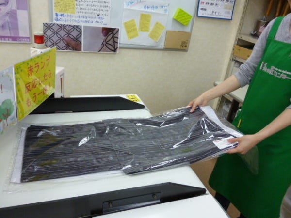 出来上がり商品のチェックをします(サイズや柄の確認など)