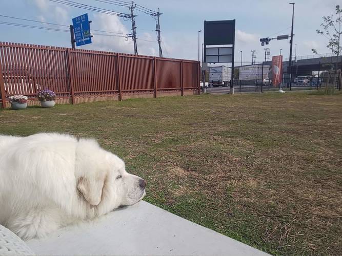 待ち時間ついでにドックランで遊んで、カフェでお茶して。
