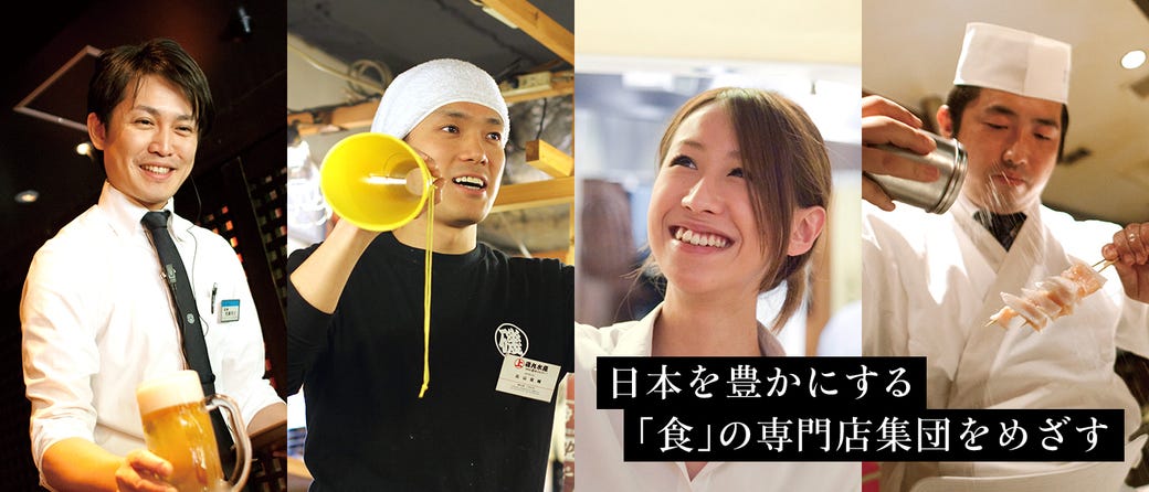 当社は「時流を先見した【こだわり】の限りなき追求」という経営理念のもと、「日本を豊かにする【食】の専門店集団を目指す」というビジョンを掲げ、専門性の高いお店をひとつひとつ丁寧に出店してまいりました。当社が考える専門店とは料理が専門的であるということにとどまらず、スタッフ全員が料理やサービスに誇りをもち、お客様に喜びと感動を提供することにこだわり続けるお店です。