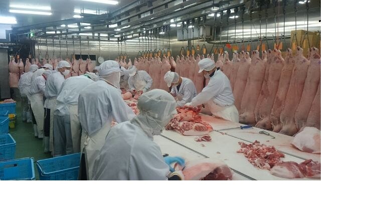大手メーカーやスーパー量販店向けに、豚部分肉の梱包仕訳を行う