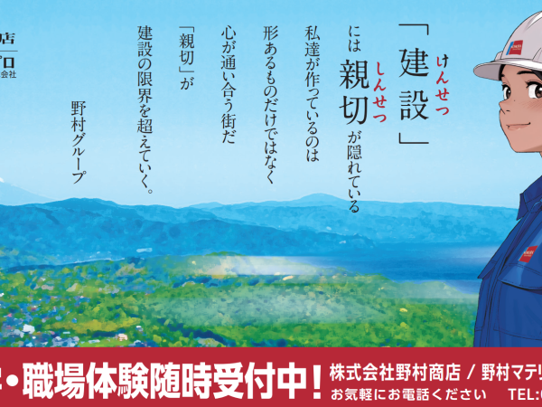 | 事業内容 | 野村商店は建設資材の製造・販売・工事を行なっている会社です。交通インフラ整備、防波堤工事、避難所建設など幅広い分野の工事で確かな実績を積み上げて参りました。創業100年を迎え、次の200年に向けてさらに事業を飛躍させるべく新しい人材を募集致します! |