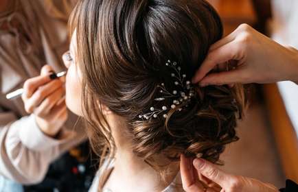 結婚式会場毎のシーンに映えるヘアメイクをご提案し、ヘアメイクリハーサルから結婚式当日のメイクアップを専任ヘアメイクが担当します。ゴールデンバランス理論に基づく確かな技術で自分では気づいていないチャームポイントを惹きだす、そういう美しさを創ります。