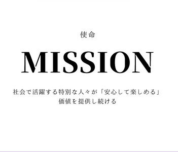 「社会で活躍する特別な人々」が安心して楽しめる価値を提供することを使命としています。