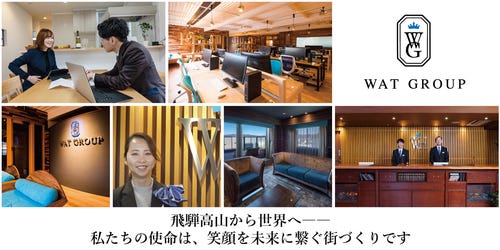 | 事業内容 | 株式会社ワットホテルは世界遺産も有する国内外から注目の観光地、「飛騨高山」を中心に宿泊業を営んでいます。 2018年の一つ目のホテル、ワットホテルから始まり、現時点ではリラックスホテル飛騨高山、レジデンスホテル高山駅前、ワットリゾート6施設、モリノヴィラ、と全10施設、209部屋を運営しております。 ≪ WAT GROUP ≫ 岐阜県北部の「飛騨高山」にて不動産業からスタートし、賃貸業、建築業、宿泊業と様々な分野に発展しているグローバル企業です。業種の垣根にとらわれない自由な発想のもと、多くのお客様にサービスを提供しております。 将来的にはホテル事業をグループの中核と据え、全国に展開していきたいと考えています。 |