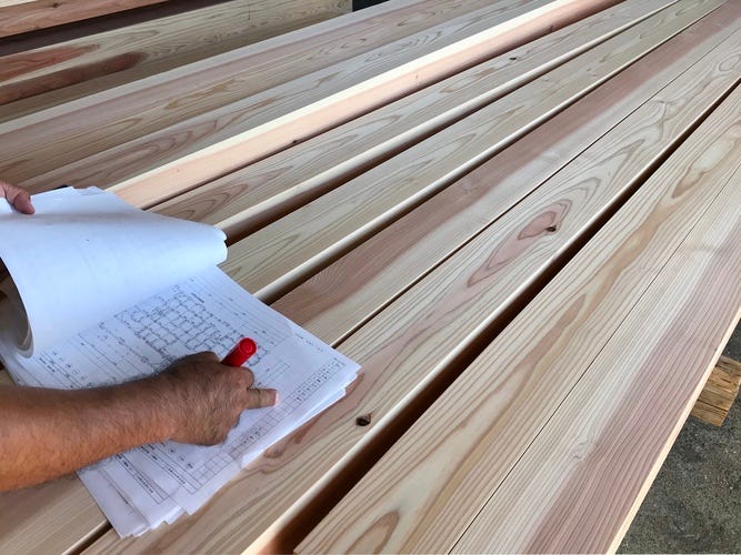 製材機を操り丸太から建築用材を生産する技術の先には