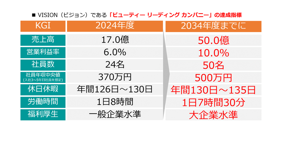 特に適正な給与、労働環境の改善、キャリア開発の機会の提供、福利厚生の充実など、これまで業界全体が遅れをとっていた美容スタッフのWell-beingの向上に率先して取り組みます。